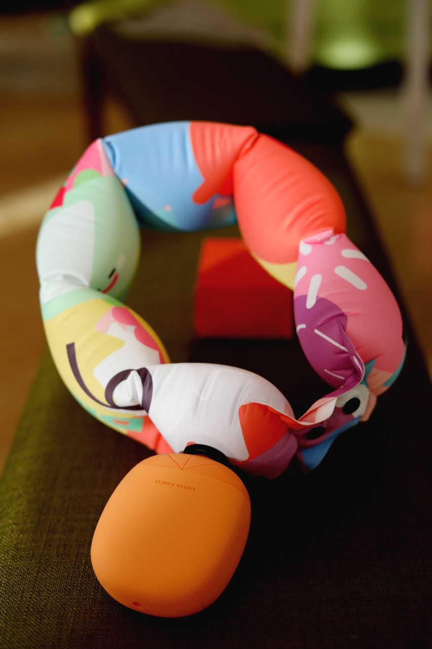 品名:都市之森联名充气颈椎枕 *本产品不适合三岁以下儿童使用,产品含细小物件,可导致3岁或以下儿童及婴儿窒息。