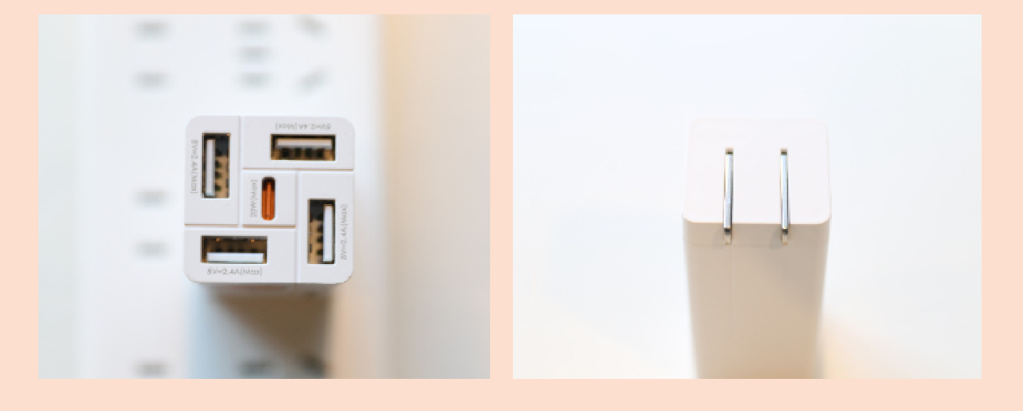 名称:充能神器 充电插头 材质:PC外壳 输出功率:Type-C*1,USB*4;USB:5V-3.1A(Max),USB+Type-C:20W+15.5W (35.5W Max) 尺寸:72*33.7*33.7MM *本产品不适合3岁以下儿童使用,产品含细小物件,可致3岁或以下儿童及婴儿窒息